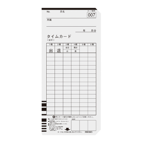 セイコー用タイムカード SY 全締日対応 両面 6欄 SYカ-ド