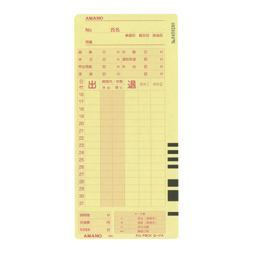 タイムカード 6欄印字 月末・15日締切 TIMEPACK6-Aカ-ド