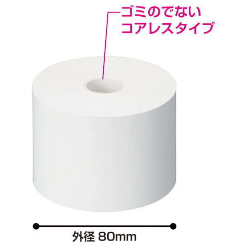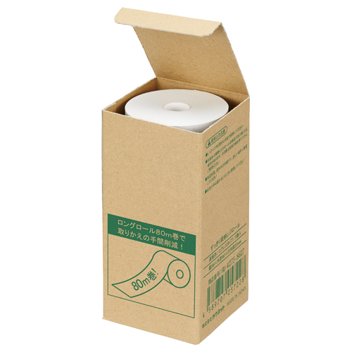●箱入りタイプで保管しやすく取り出しやすい●高保存タイプ●5巻入り●幅×直径/58×80mm●長さ/約80m●穴内径/直径20mm●箱寸法/幅86×奥行86×高さ300(購入時)・177(縮小時)mm※本商品は保管用の箱に入れた状態であれば遮光用の黒袋に入れずに問題なくご使用いただけます。※本商品は摩擦によりロール表面が多少黒くなる場合があります。利用開始時に汚れた部分(約25cm)を破棄しても使用できる長さは約80mございます。※本商品は長さを優先管理しており、外径は目安値となります。