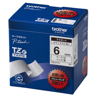 ピータッチ用TZeテープカセット 白に黒文字6ミリ幅 5本パック TZE-211V