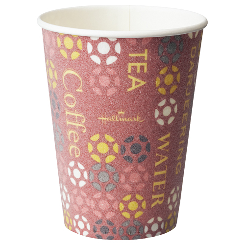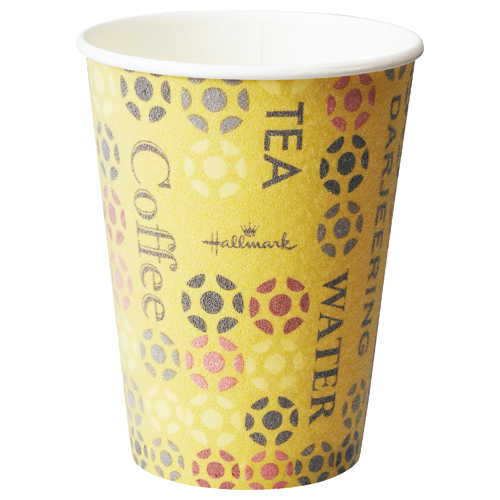 ●ホールマーク社デザイン。カップ表面にフィルムの気泡層があるので中の飲み物の温度を手に伝えにくく、持って熱く感じにくいカップです。