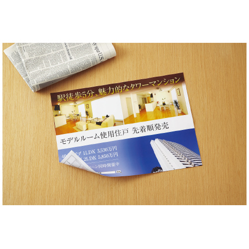 ●両面のチラシやメニューなどに/かさばりにくい薄手の両面印刷用紙。チラシやメニューなど、商業用途の大量印刷に役立ちます。
