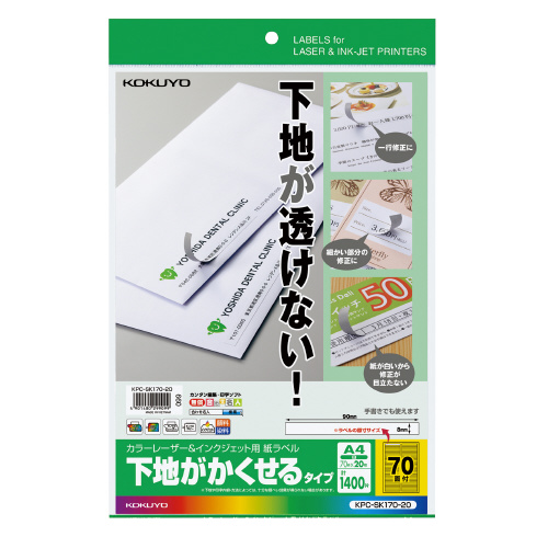カラーLBP&IJP用紙ラベル 下地がかくせるタイプA4 20枚 70面