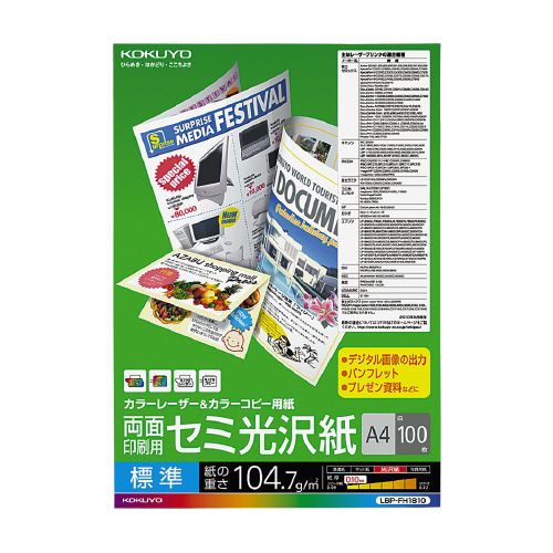カラーレーザー&カラーコピー用紙 両面印刷用 セミ光沢紙 100枚 A4