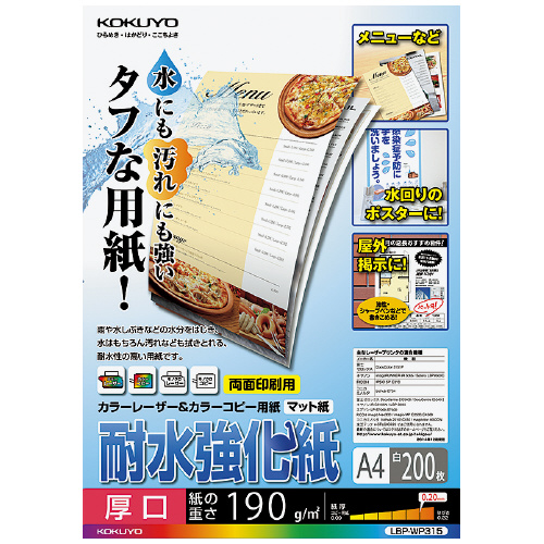 カラーレーザー&カラーコピー用紙 耐水強化紙 A4 200枚