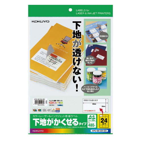 カラーレーザー&IJP用紙ラベル 下地がかくせるタイプA4 20枚 24面