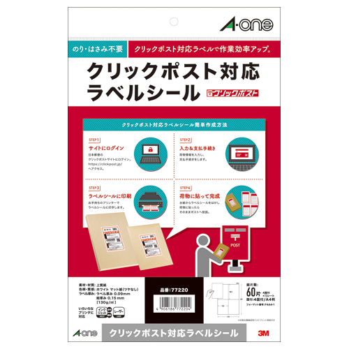 クリックポスト対応ラベルシール プリンタ兼用 マット紙 A4 4面