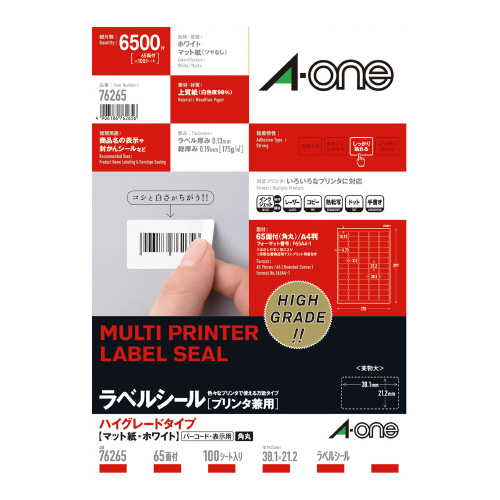 プリンタ兼用ラベルシールHGタイプ 65面 100枚