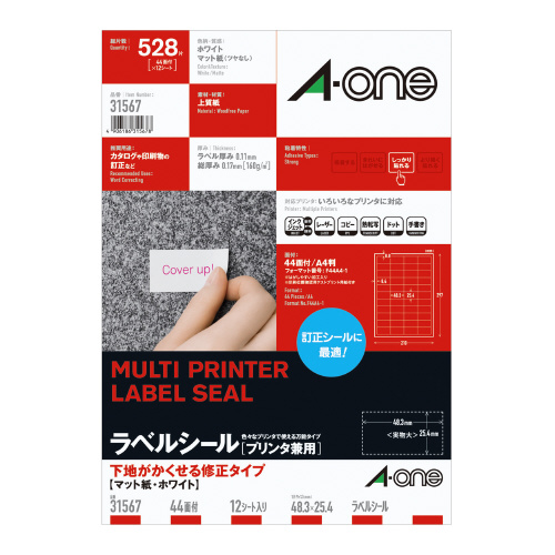 プリンタ兼用ラベルシール 下地がかくせる修正タイプ 44面 12枚