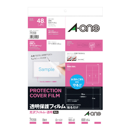 エーワン 透明保護フィルム 100×61mm A4判 8面
