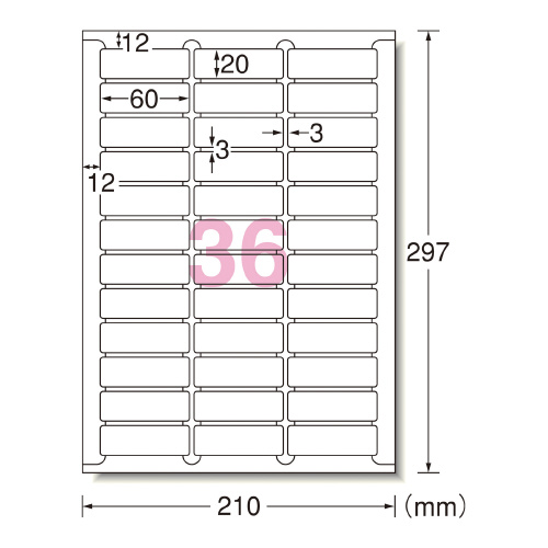 プリンタ兼用ラベルシール マット紙 36面 四辺余白付角丸100枚