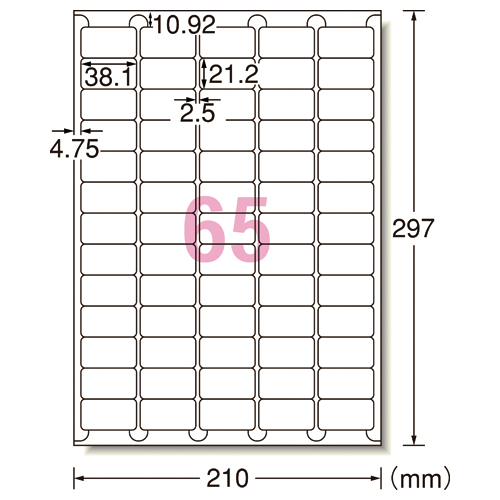 プリンタ兼用ラベルシール キレイにはがせるタイプ 65面 100枚
