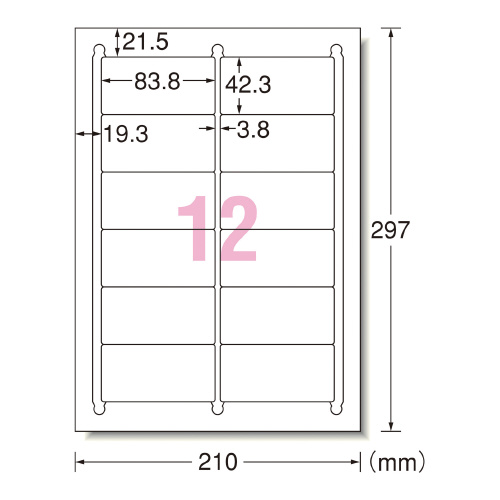 プリンタ兼用ラベルシールHGタイプ 12面 四辺余白付角丸 20枚