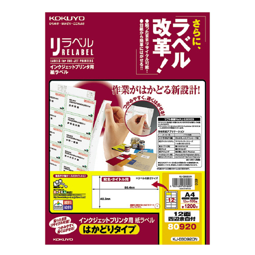 IJP用ラベル リラベル A4 100枚入 12面四辺余白付