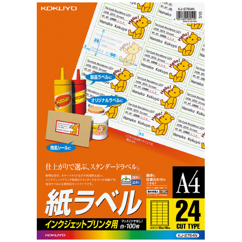 インクジェットプリンタ用紙ラベル A4 100枚入 24面カット