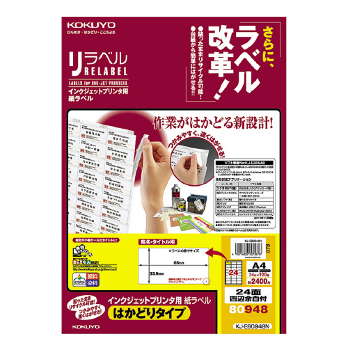 IJP用ラベル リラベル A4 100枚入 24面四辺余白付