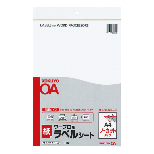 ワープロ用ラベルシート(共用タイプ) A4 10枚入 ノーカット