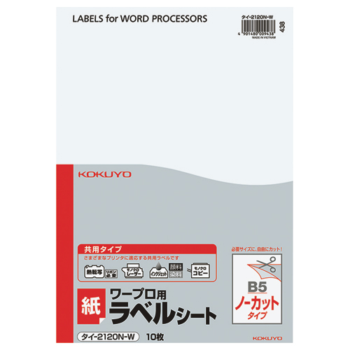 ワープロ用紙ラベル(共用タイプ) B5 ノーカット 10枚