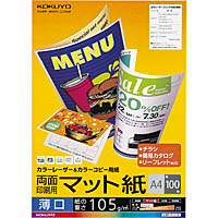 カラーレーザー&カラーコピー用紙 両面印刷用マット紙 薄口A4 100枚