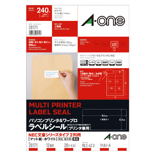 パソコンプリンタ&ワープロラベル A4判12面20シート