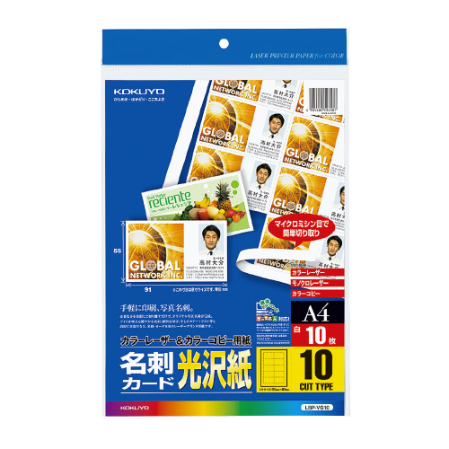 カラーLBP&カラーコピー用名刺カード 光沢紙 10面 10枚/袋 A4