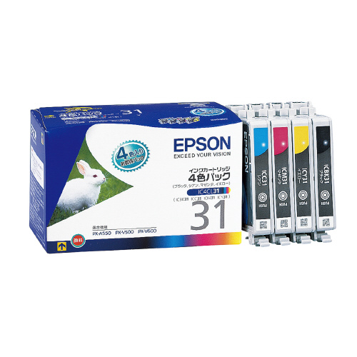 ●シアン(型番:ICC31)・マゼンタ(型番:ICM31)・イエロー(型番:ICY31)・ブラック(型番:ICBK31)の4色パック