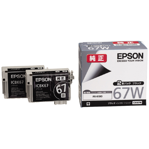 エプソン対応純正インクカートリッジ ICBK67W (ブラック)×2本 ICBK67W