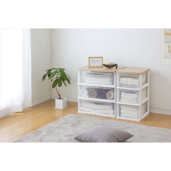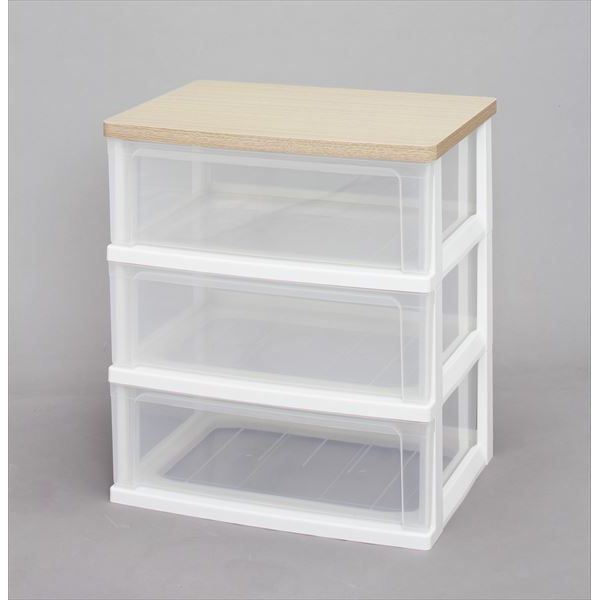 ・新生活応援! 【3段タイプ】衣類の収納にピッタリ。木の天板がおしゃれで優しい雰囲気のチェスト型収納ケース。組み立ていらずの完成品でお届け。
