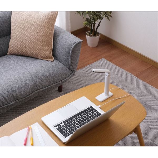 商品の説明スタイル:7)コンパクトモデルしっかり明るいのにまぶしくないLEDデスクライト。コンパクトでスペースをとらないので、リビング学習・ベッドサイドでの使用におすすめです。◆まぶしさガードまぶしい光源から目を守るガード設計でまぶしさをカットします。光が直接目に入りにくいので、目に優しい。◆しっかり明るく文字が見やすいリビングでの読書や学習におすすめの明るさで文字が見やすい。最適な照度は、集中力UPにも繋がります。ベッドでの読書にもおすすめです。◆コンパクト&USB給電コンパクトで持ち運びが簡単です。重さ約230gと軽量です。リビングでも場所をとりません。さらに、USB給電式で、外出先など様々な場所で使えます。※USB電源アダプターは付属しておりません。◆無段階で調光できる光の強さを無段階で調節可能です。お部屋の明るさや目的によって自由に調節できます。調節はスイッチに触れるだけで簡単にできます。調節された明るさは記憶されて、再点灯時にも同じ明るさで点灯します。◆角度調整可能上下方向約160°に角度調整ができます。照らしたい場所をしっかりと照らせます。※定格消費電力は明るさ最大点灯時