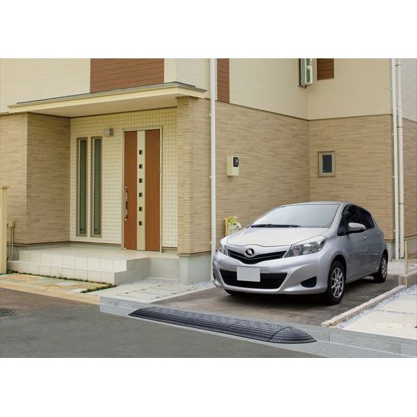 商品の説明サイズ:コーナー衝撃を和らげ、乗り入れをスムーズにするゴム段差プレートです。ゴム製だから、音が静かで、ズレにくい。すべりにくい表面加工が施されています。エクステリアに調和するデザイン。玄関前などにも使えます。