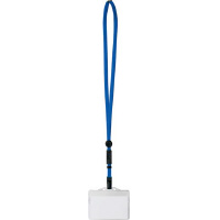 ●表示面はキズがつきにくい素材の名札 ●吊り下げひも長さ/幅10mm×約90cm ●タイプ/名刺用 ●材質/ひも:ポリエステル100%、クリップ:PA、安全パーツ:PP、名札ケース:PVC ●胸付フック、安全パーツ、ひも調整パーツ付き ●中紙なし ●タイプ/横 ●カード寸法/62×97mm ●色/青 ●名刺サイズ ●ソフト ●チャック付き ●入り数/1パック(10個入)
