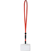 ●表示面はキズがつきにくい素材の名札 ●吊り下げひも長さ/幅10mm×約90cm ●タイプ/名刺用 ●材質/ひも:ポリエステル100%、クリップ:PA、安全パーツ:PP、名札ケース:PVC ●胸付フック、安全パーツ、ひも調整パーツ付き ●中紙なし ●タイプ/横 ●カード寸法/62×97mm ●色/赤 ●名刺サイズ ●ソフト ●チャック付き ●入り数/1パック(10個入)