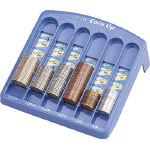 ●各金種(1列)50枚収容 ●金種別に硬貨を積み重ねると一目で金額がわかります。 ●5段ずつ階段状の目盛りが入り、枚数が分かりやすい ●サイズ/W165×D173×H66mm ●材質/再生ABS