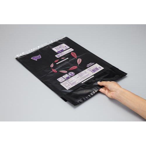 ●リサイクル原料50%配合の環境に配慮した中身が見えにくいエチケット袋●寸法/ヨコ320×タテ380mm●厚さ/0.02mm●カラー/黒●材質/低密度ポリエチレン(再生原料使用)