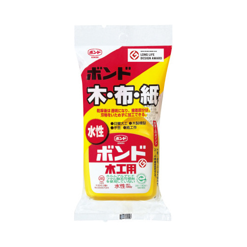 ●種別/木工用●容量/180g●材質/容器(キャップ・ノズル除く):再生ポリエチレン●液色/白(透明になります)●ハンディパック●成分/酢酸ビニル樹脂系エマルジョン●対応素材/木、布、紙