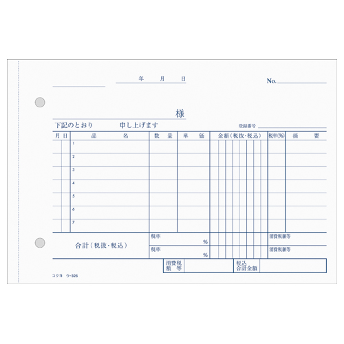 NC複写簿 仕切書 B6横 7行 50組 ウ-326
