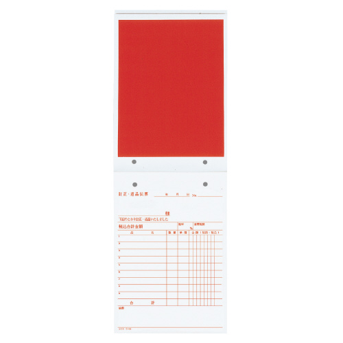 BC複写簿 3枚訂正返品伝票 B6縦 2穴80mmピッチ 9行 50組 ウ-190N