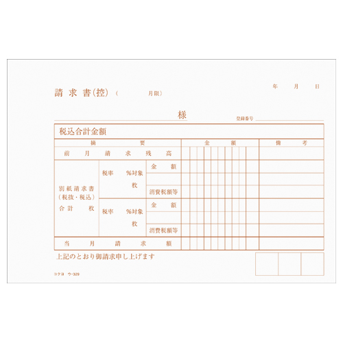 NC複写簿 合計請求書 B6横 50組 ウ-329