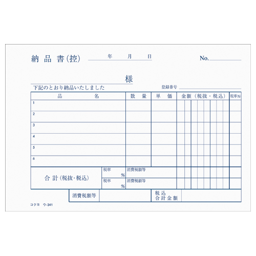 NC複写簿 納品書 A6横 6行 50組 ウ-341