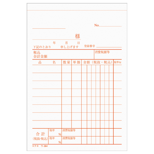 NC複写簿 3枚仕切書 B7縦 8行 50組 ウ-364