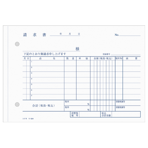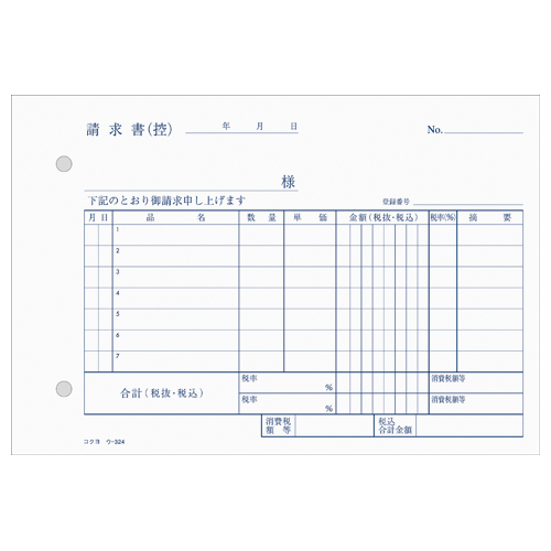 NC複写簿 請求書 B6横 2穴80mmピッチ 7行 50組 ウ-324
