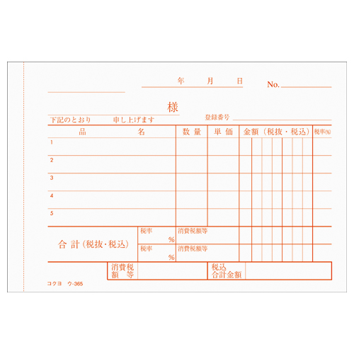 NC複写簿 3枚仕切書 B7横 5行 50組 ウ-365