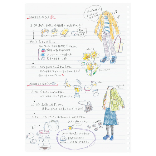 ●平らに開くので書き込みやすい、平らに折り返せるので狭い場所でも心地よく使える、といったリングノートのよさはそのままに、書くときリングに手が当たっても気にせず端まで美しく書ける、これからの新定番ノートです。