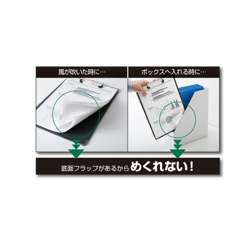 ●紙の下側を固定し、書類のめくれを防ぐ「底面フラップ」
