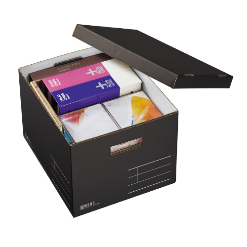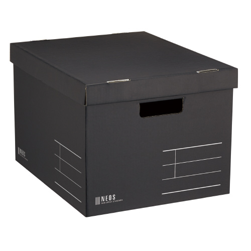 収納ボックス<NEOS> (Lサイズ・フタ付き)ブラック A4-NELB-D