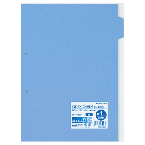 カラー仕切カード ファイル用5山見出し A4-S 2穴 第1山・青 20枚 シキ-60-1