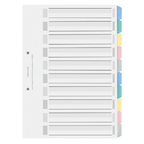 カラー仕切カード<PP>(ファイル用) A4縦 10山+扉紙 2穴 1組入 シキ-P120