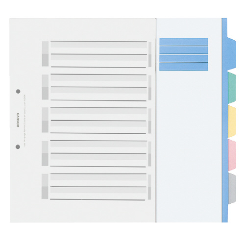カラー仕切カード<PP>(ファイル用) A4縦 5山+扉紙 2穴 5組入 シキ-P30