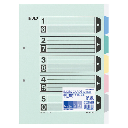 カラー仕切カード(ファイル用) A4縦 5山+扉紙 2穴 2組入 シキ-70
