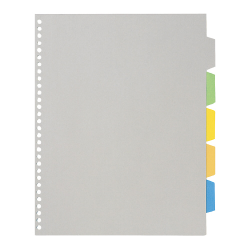 ●紙製のスタンダードタイプ ●A4タテ ●サイズ/297×230(+12)mm ※( )は山高さ ●5色5山見出し(計5枚入り)●穴数/2穴・30穴 ●再生紙使用